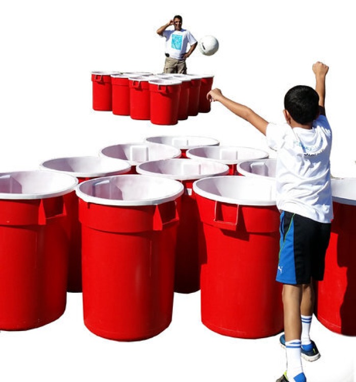 The game of pong just got more fun - this GIANT size game is perfect for college frat parties - grad parties, corporate events and more - game comes complete with 20 giant sized red cups and 2- balls